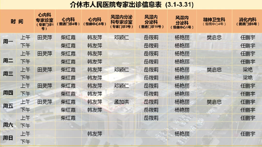 ✦如遇特殊情况(如开会,外出培训),出诊时间以当日实际出诊情况为准。