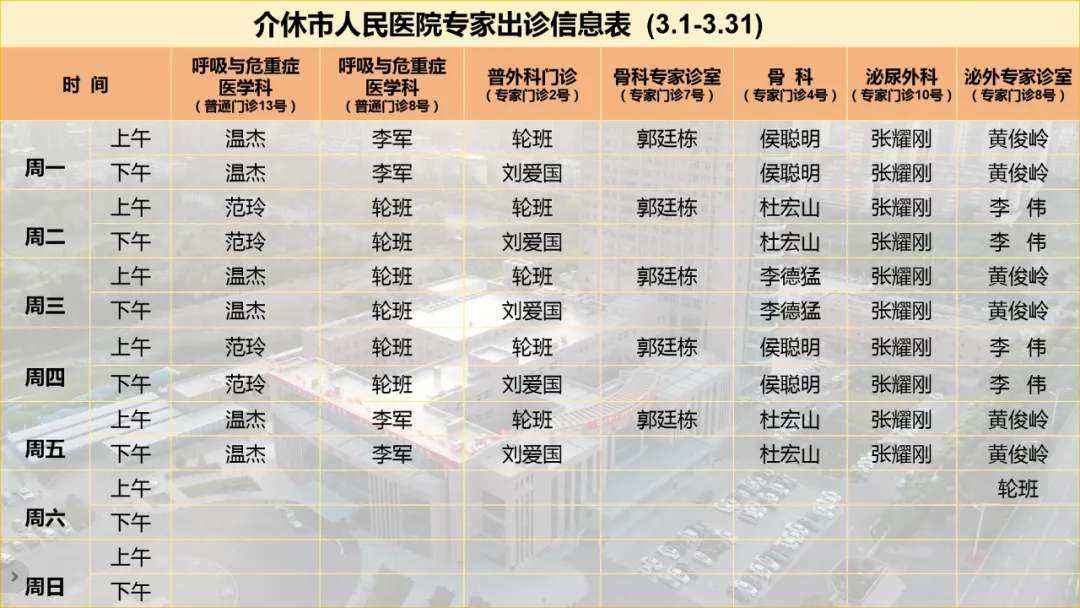 介休市人民医院门诊部将提供多个科室的医生及专家出诊,以满足您多元化的就诊需求。以下是2026年3月1日-2026年3月31日本院门诊各科室出诊安排: