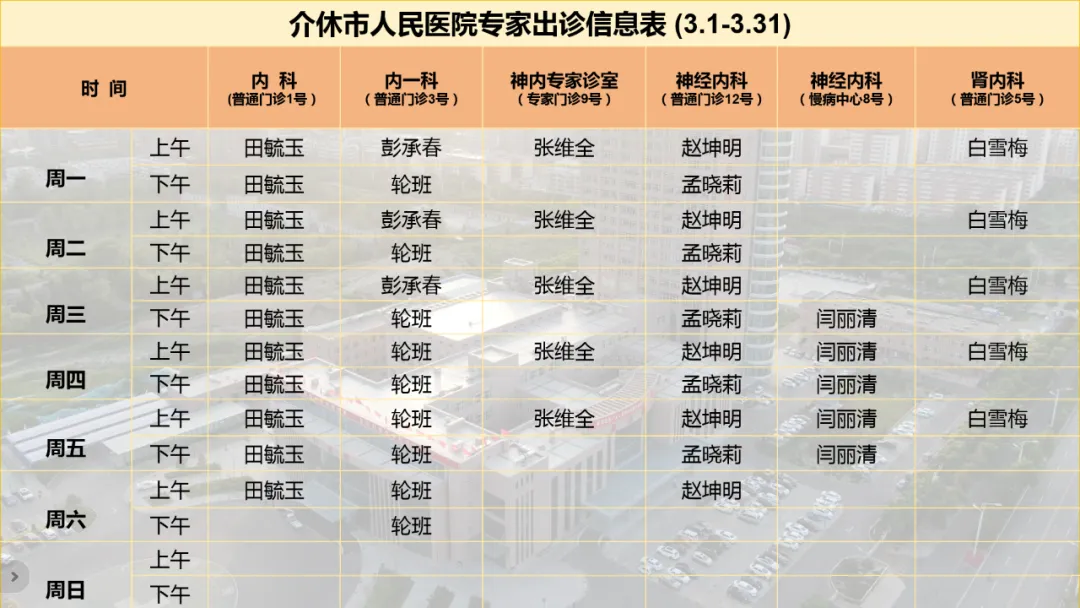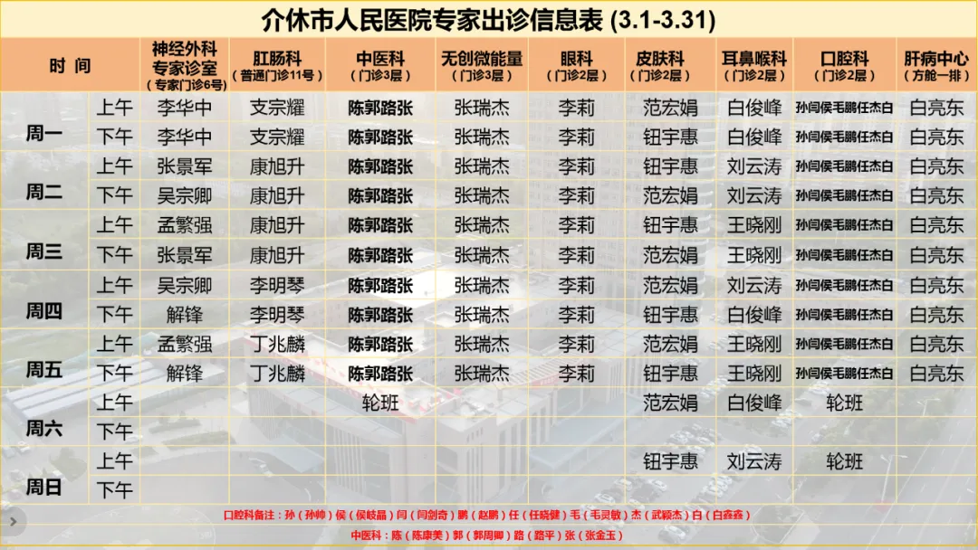 介休市人民医院门诊部将提供多个科室的医生及专家出诊,以满足您多元化的就诊需求。以下是2026年3月1日-2026年3月31日本院门诊各科室出诊安排:
